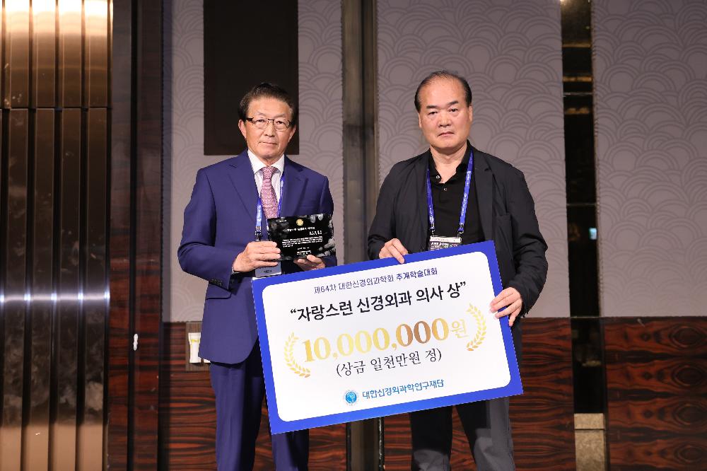 대한신경외과학회 추계 국제학술대회 Gala Dinner 에서 연구재단 봉사상 제4회 "자랑스런 신경외과 의사 상" 시상이 있었다.